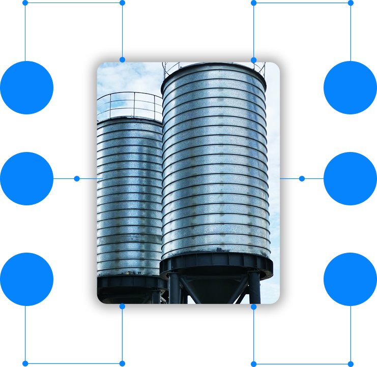 先進的建倉技術,其高度、直徑可選擇性強。對顆粒、粉狀、液狀物料均可儲存
